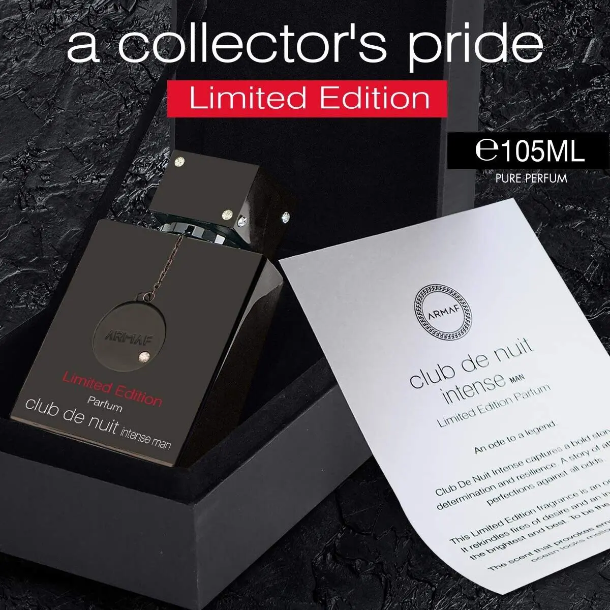 Club de Nuit Intense Man Limited Edition Parfum de Armaf es una fragancia de la familia olfativa para Hombres. Club de Nuit Intense Man Limited Edition Parfum se lanzó en 2021. Las Notas de Salida son limón (lima ácida), piña, lima (limón verde), pimienta negra, bergamota y pimienta rosa; las Notas de Corazón son jazmín, rosa, lirio de los valles (muguete) y fresia; las Notas de Fondo son almizcle blanco, ambroxan, ámbar gris, cedro, cuero y pachulí.